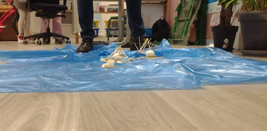 Een challenge met lego, waarbij de kinderen met lego een voertuig moeten bouwen om een steeds groter wordende kloof te overbruggen. Natuurlijk zijn de kinderen in tweetallen bezig met de Challenge kaarten. Dat zijn opdrachten waarbij ze allerlei materialen moeten combineren om een mooi eindproduct te creëren. Bijvoorbeeld een afwateringsysteem bouwen voor een villa. Of een werkende vendingmachine met motoren uit de lego sets. Daarnaast doen we opdrachten met de gehele groep. Een voorbeeld is de beroemde eierproef, waarbij een ei uit het raam wordt gegooid en niet mag breken. Ook leuk om thuis te proberen.