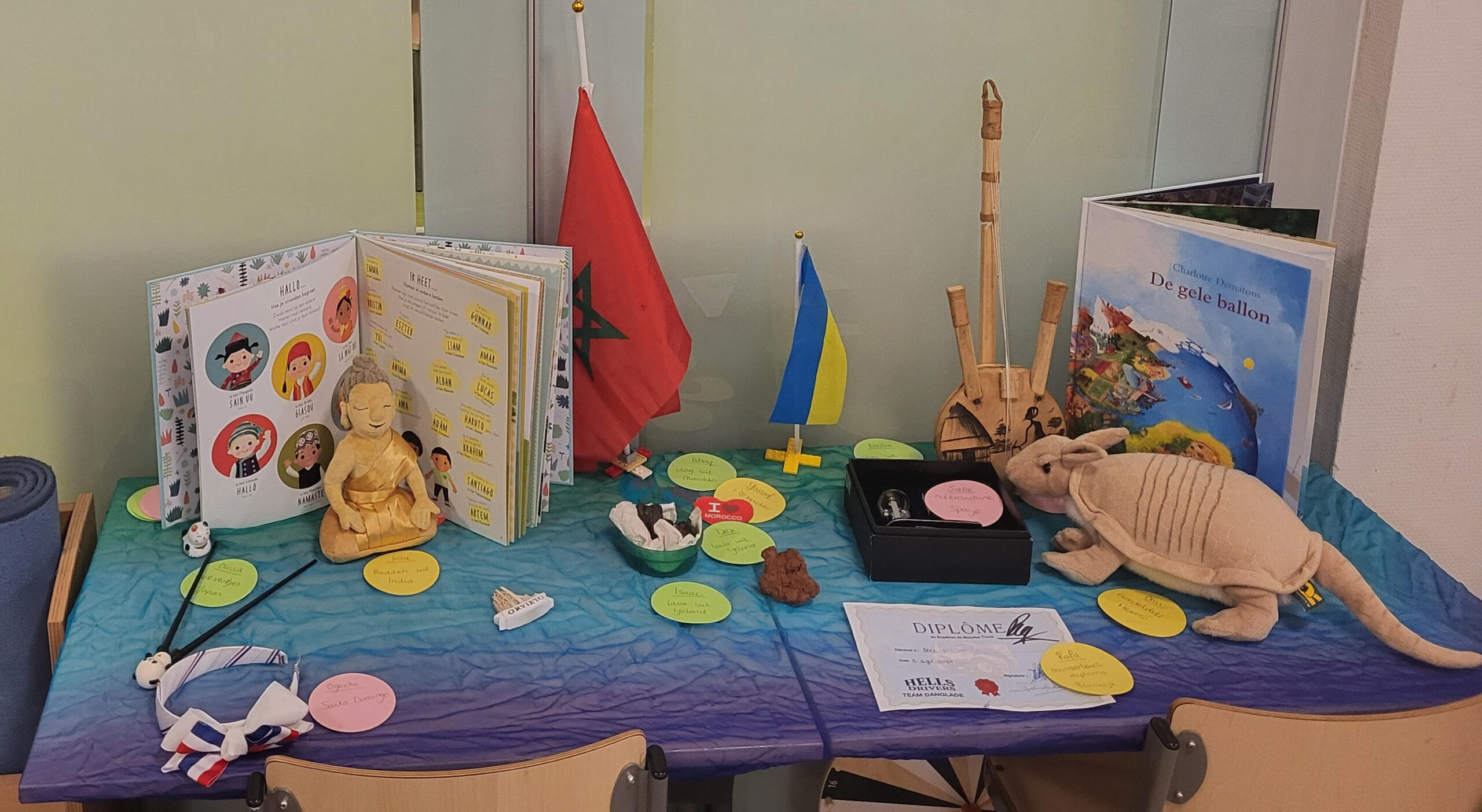 Daarnaast nemen de leerlingen een voorwerp mee uit een ander land voor op de thematafel. Deze voorwerpen vormen het startpunt voor verder onderzoek. Aan het einde van het thema werken de kinderen samen aan een korte presentatie over een object van de thematafel. Zo leren zij niet alleen over de wereld, maar ook van en met elkaar! Binnen dit thema wordt ook aandacht geschonken aan woordenschat, waardoor ze niet alleen leren over verschillende culturen, maar ook hun woordenschat uitbreiden.